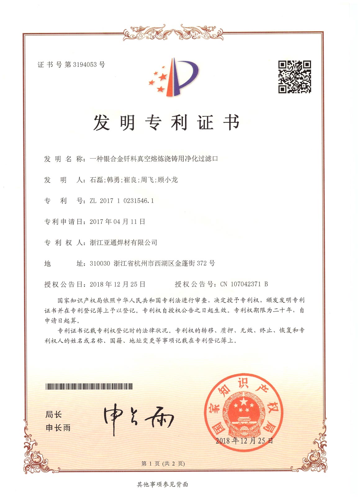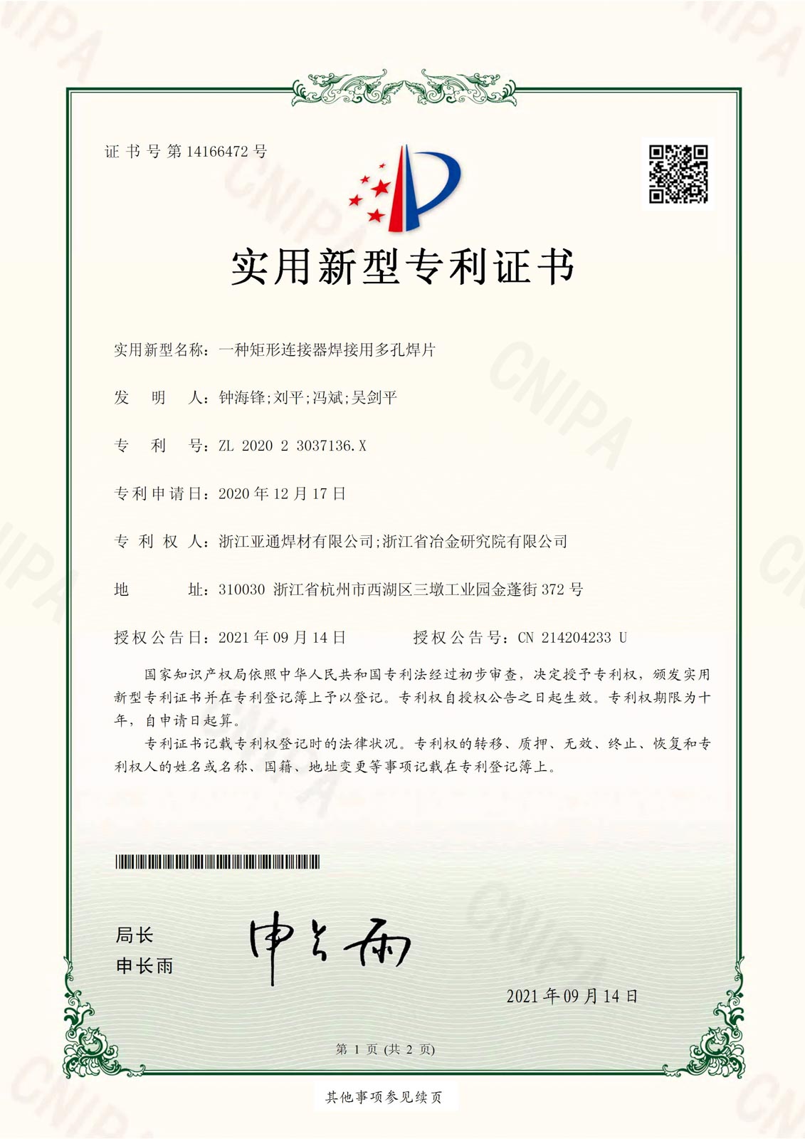 2016年4月,經(jīng)省科技廳、省發(fā)改委、省經(jīng)信委、省財(cái)政廳批準(zhǔn),浙江亞通新材料股份有限公司作為先進(jìn)釬焊材料產(chǎn)業(yè)技術(shù)創(chuàng)新的綜合試點(diǎn)單位,組建浙江省亞通先進(jìn)釬焊材料重點(diǎn)企業(yè)研究院,2020年12月建成并對(duì)外開放。