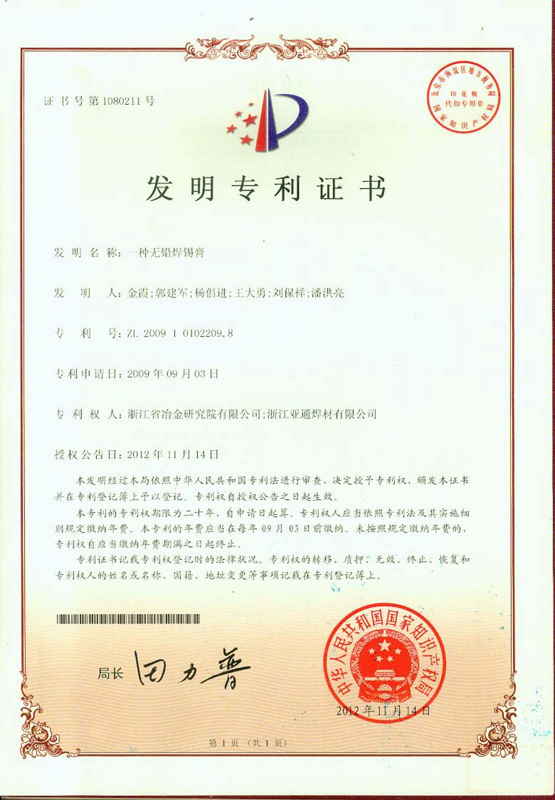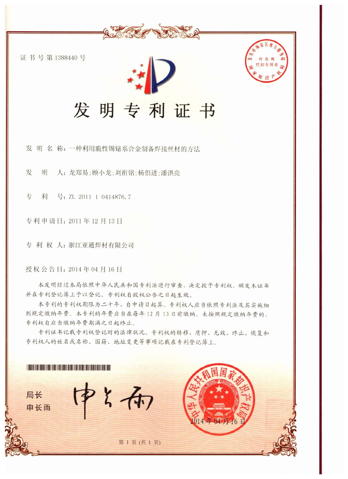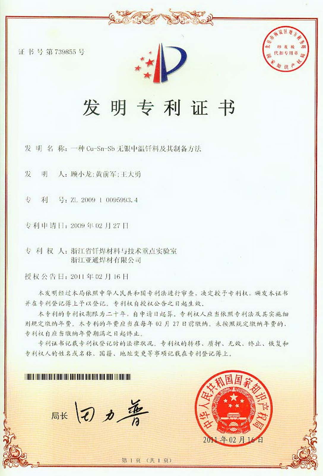 釬焊材料與技術(shù)浙江省工程實(shí)驗(yàn)室于2012年6月經(jīng)浙江省發(fā)改委批準(zhǔn)建設(shè)。
