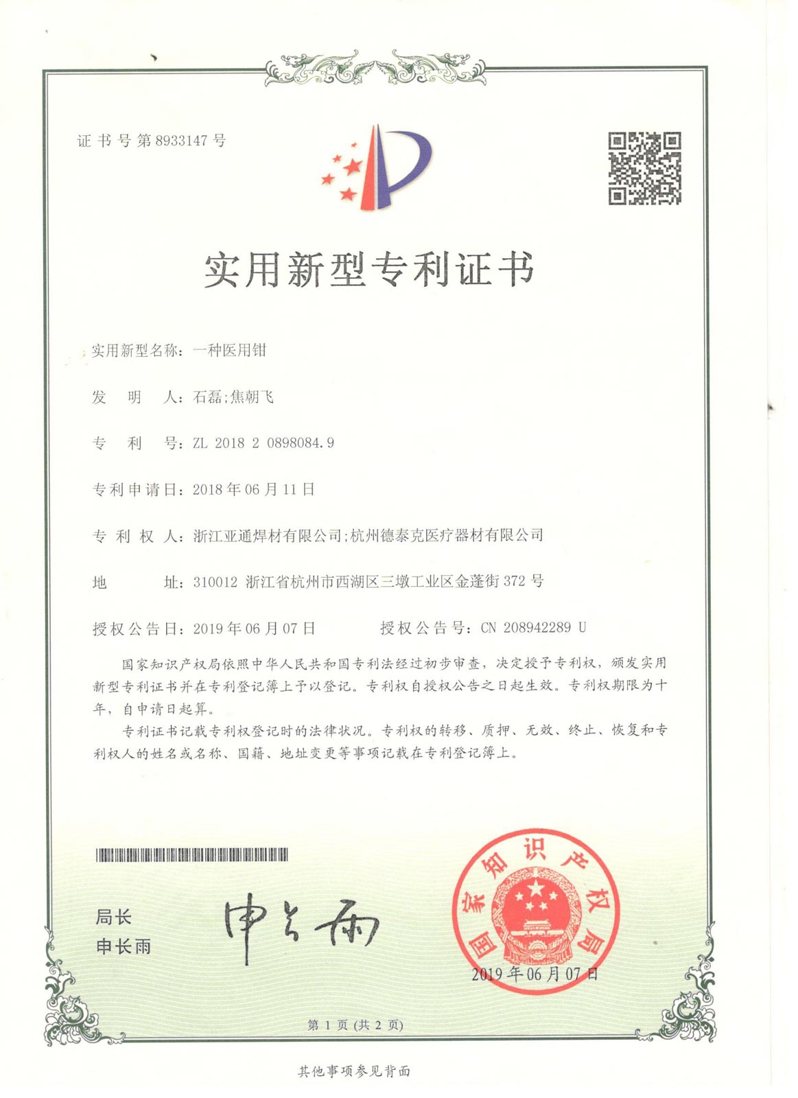 國(guó)家發(fā)明專利(部分)